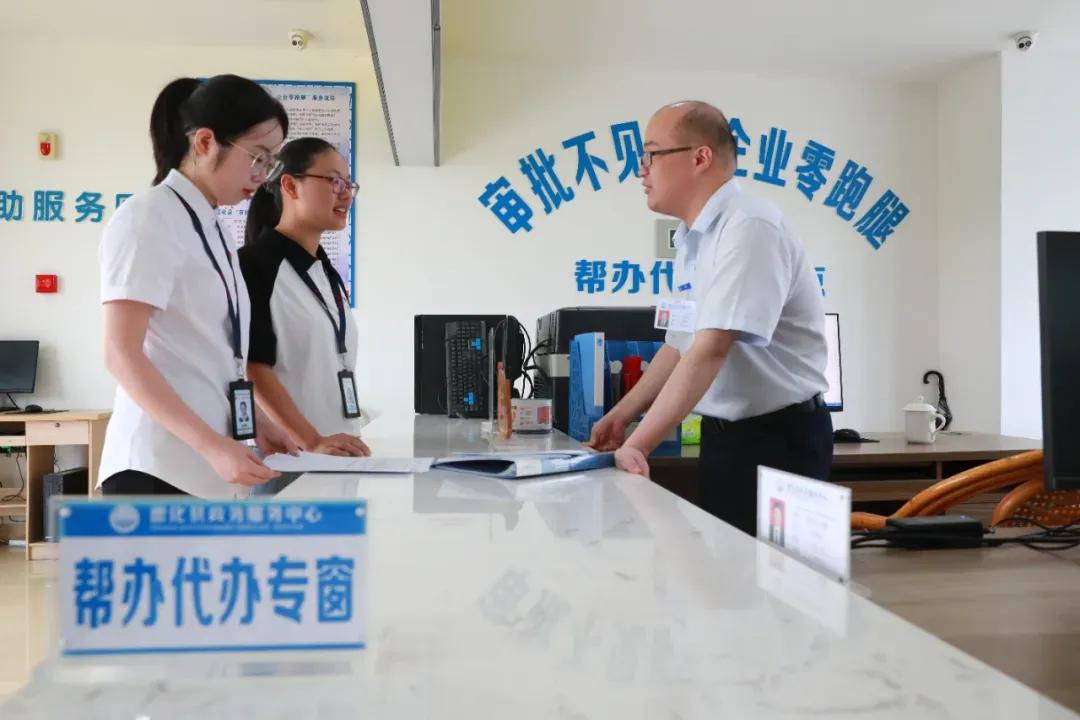 德化縣紀委監(jiān)委以“點題整治”為抓手,著力檢查政務(wù)服務(wù)審批“堵點”、監(jiān)管“盲點”等問題,并將監(jiān)督中發(fā)現(xiàn)、企業(yè)反映突出的問題列入清單,聯(lián)席會商督促相關(guān)職能部門厘清權(quán)責(zé)“斷點”,健全完善政務(wù)服務(wù)管理機制。圖為德化縣紀檢監(jiān)察干部前往縣政務(wù)服務(wù)中心幫辦代辦專區(qū)了解相關(guān)情況。(林俊賢 攝)